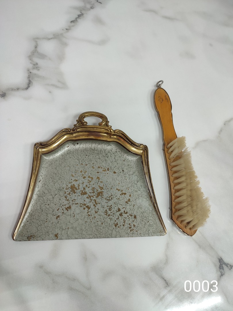 Совок для сметания крошек со стола. Набор для камина. Щетка: дерево, латунь, натуральная щетина, длина 23 см. Совок: латунь, 16х17,5 см.